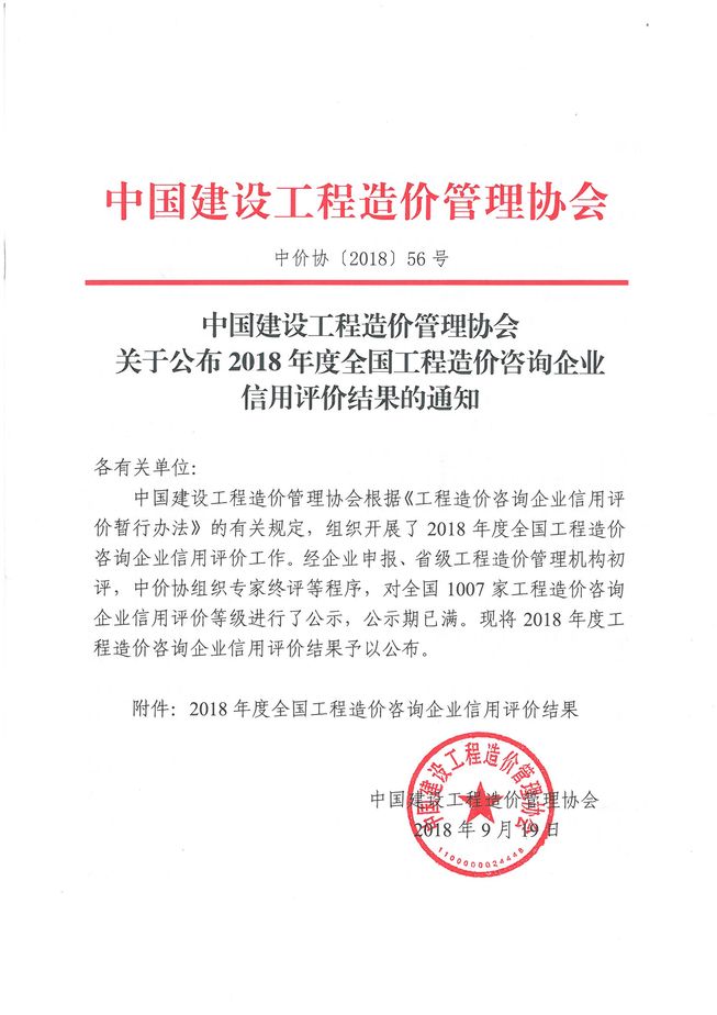 我公司榮獲2019年度工程造價(jià)咨詢企業(yè)信用評(píng)價(jià)AAA-級(jí)